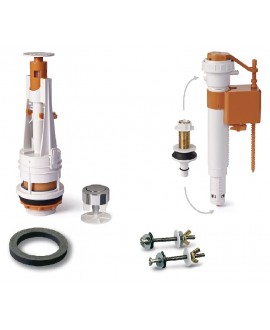 Con toma de lavadora en polipropileno blanco y acero inoxidable.