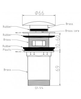 Sifón cilíndrico y válvula clic clac en latón cromado de 1 1/4" 32 mm.