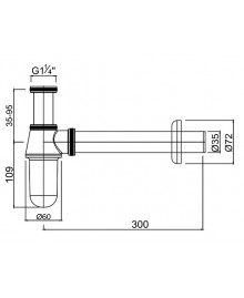 Sifón de botella en latón cromado de 1 1/4" 32 mm.